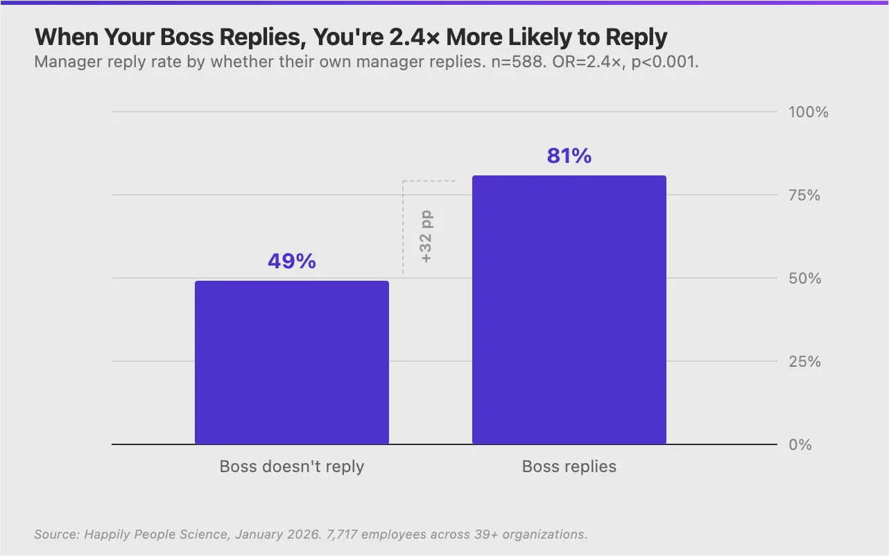 Specifically, managers whose own manager responds to employee feedback are 2.4x more likely to respond to their own team's feedback. The probability jumps from 49% to 81%.
