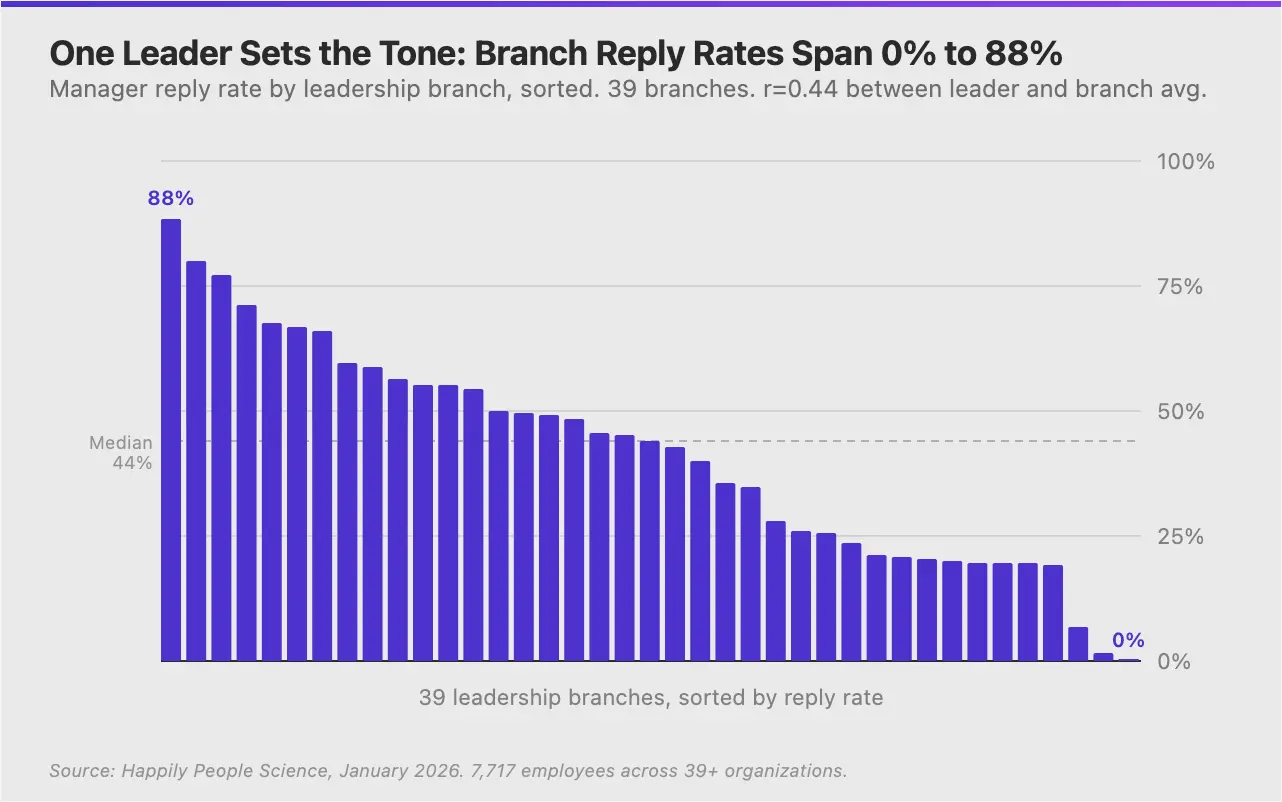 These norms compound over time. New managers joining a high-reply branch adopt the behavior within weeks. Those joining silent branches never start. The employee feedback environment they enter shapes their habits more than any onboarding program.